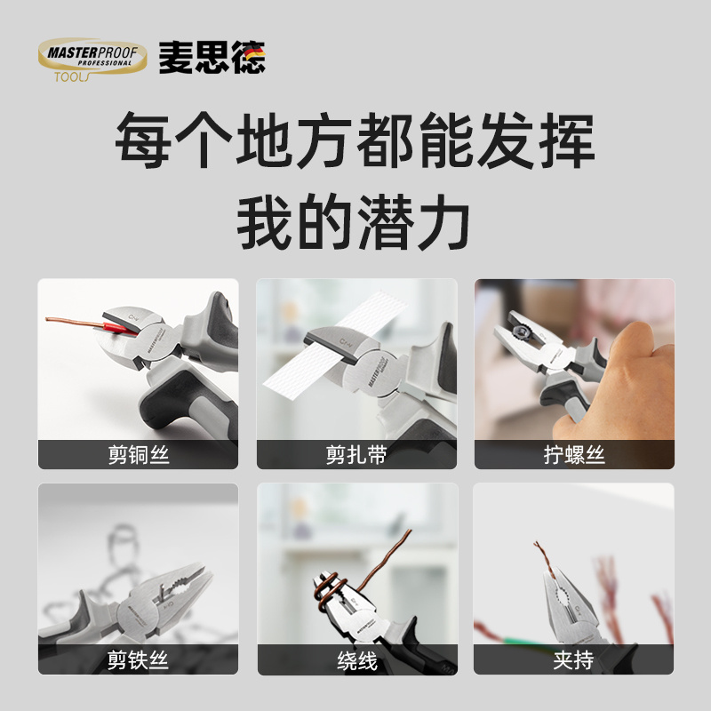 商品名称:麦思德 家用钳子3件套 6寸钢丝钳 尖嘴 钳斜嘴钳 68720