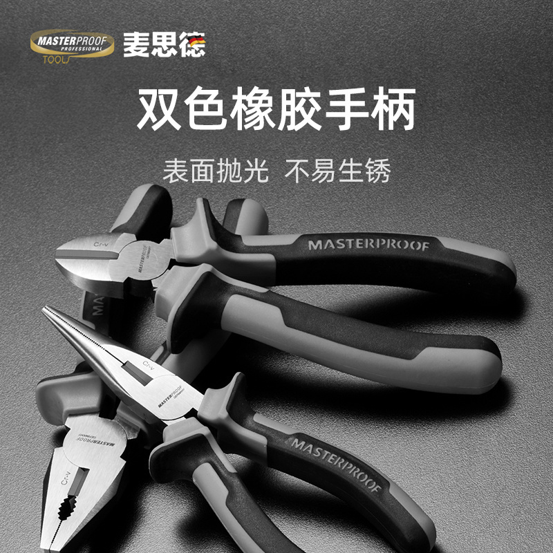 麦思德 家用钳子3件套 6寸钢丝钳 尖嘴 钳斜嘴钳 68720